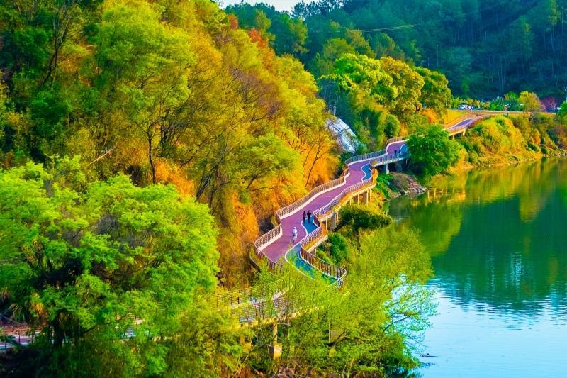 场景:龙岩上杭汀江绿道 地点:福建省龙岩市上杭县双拥路5号 推荐理由: 汀水三摺而过,宛如玉带,上杭汀江绿道便处在这条“客家母亲河”中游的黄金水段,形成“前有琴冈为案,后有金山为屏”的旅游度假胜地。长岭驿站至客家缘驿站片区,现已打造成为国家3A级旅游景区。