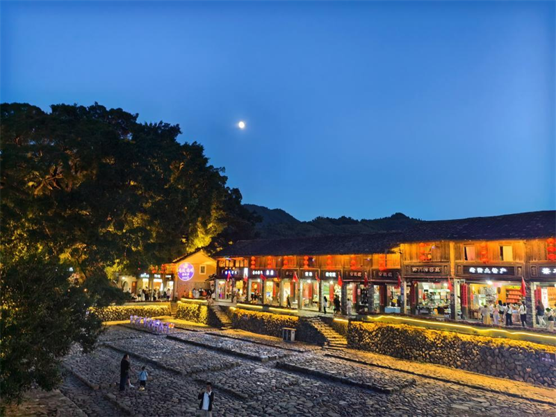 南靖云水谣古街区坐落于世界文化遗产福建土楼核心区,依托和贵楼、怀远楼两座世遗土楼与千年古榕、卵石古道,打造出一条全长约1.5公里的闽南风情街区。作为历史上连接汀漳两府的重要通道,如今汇聚文化展示、特色购物、地道餐饮与休闲体验等多种业态,延续着往昔商旅往来、市井生活的热闹气息,成为游客感受土楼文化与闽式生活烟火气的重要窗口。