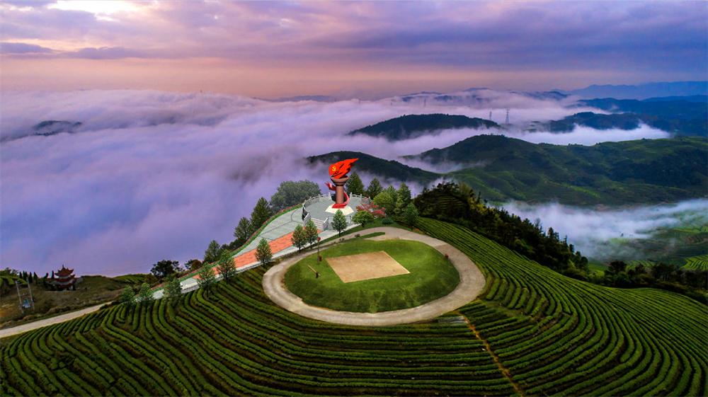 长龙镇茶山文化公园坐落于建庄村陈家坛山,占地960亩,依托连绵的茶山与优美的自然风光,构建起以“一带一环五区”为核心的功能布局——滨河休闲景观带、缤纷运动休闲环,以及入口广场、茶园观光、茶韵欣赏、茶事体验和休闲露营五大区域。公园集茶园观光、品茗体验、登山健身、风光摄影、观星露营等多功能于一体,是一处融合茶文化与山地休闲的综合性旅游目的地。