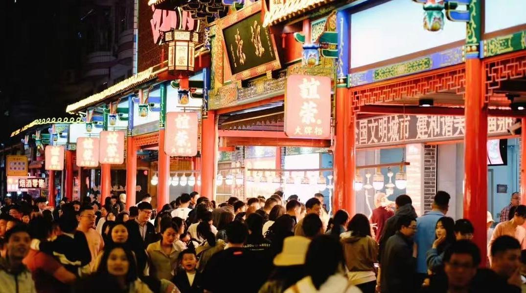 街畔桐山溪水清流映照,共同营造出沉浸式、情景化的消费体验,形成了一条融非物质文化遗产、美食文化与购物休闲于一体的新型美食街区场景。