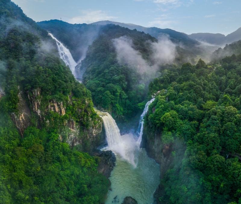 九鲤湖省级风景名胜区自然景观独特,文化底蕴深厚。景区以百丈飞瀑、千年祈梦、万年冰川和摩崖石刻四大特色亮点闻名,游客既可观赏九漈飞瀑的壮丽景色、300万年前古冰川运动遗迹,也可聆听何氏九仙传说、寻访“天子万年”“第一蓬莱”等历代摩崖题刻与徐霞客足迹,深度感受中国祈梦文化底蕴。