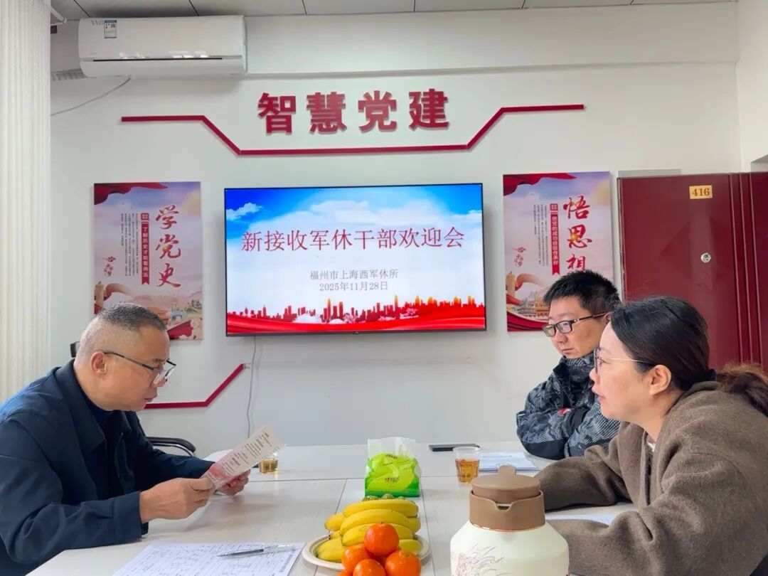 2025年,福州市退役军人事务局秉持“随退随审,即交即接”原则,高质高效推进,精准精细落实,圆满完成本年度军休干部接收安置工作。今年,福州市退役军人事务局新接收67名军休干部,接收总量位居全省第一,分别安置在10家军休所。 连日来,各军休所分别举办 新接收军休干部欢迎仪式, 营造尊崇关爱军休干部 浓厚氛围——