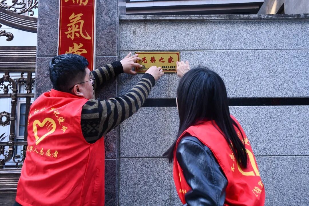 截至12月25日,云霄县已完成全县摸底排查与申请登记工作,悬挂安装正稳步推进,目前已为1000余户完成牌匾焕新,计划在2026年春节前全面完成。 “这牌子挂上门,心里头热乎乎的!”在云霄县开发区马山村,88岁的带病回乡老兵张大爷,因腿脚不便,家中旧牌早已褪色模糊。了解情况后,工作人员主动上门,轻轻取下旧牌,仔细擦拭墙面,将崭新的光荣牌平整挂上,让老人足不出户就感受到关怀。