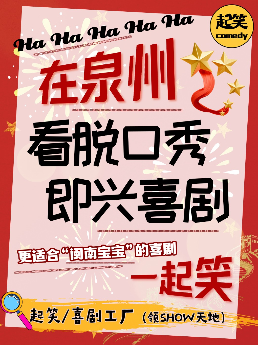 地点:泉州·丰泽区领show天地Q立方4楼起笑喜剧工厂