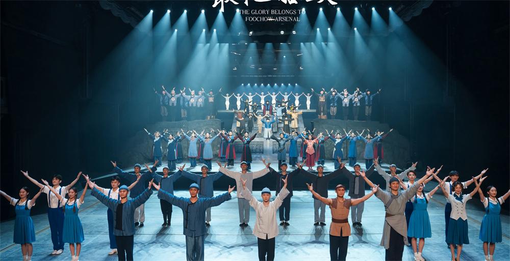 全国首座折叠渐进式剧场,带来颠覆传统的沉浸体验。整场演出以船政历史为轴,从筚路蓝缕的艰难开创,到兴办学堂的育才初心,再到制器自强的坚定步履,直至战火忠魂的悲壮不屈——每一幕都写满了历史的厚重,仿佛能听见一个民族破浪前行的回响。妈祖文化、方言、闽菜文化等民俗元素不着痕迹地融入表演,将峥嵘岁月细腻柔和地锚定在这片土地之上。