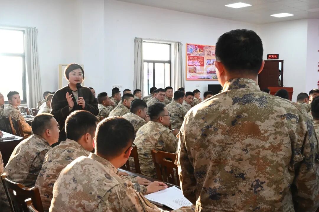 讲座伊始,该所主任吴丽娜律师以“什么是军恋”为切入点,结合前期开展的“军嫂小调查”,真实呈现了军婚家庭在团聚、沟通、子女教育等方面的特殊处境,引起在场官兵共鸣,迅速拉近了彼此距离。