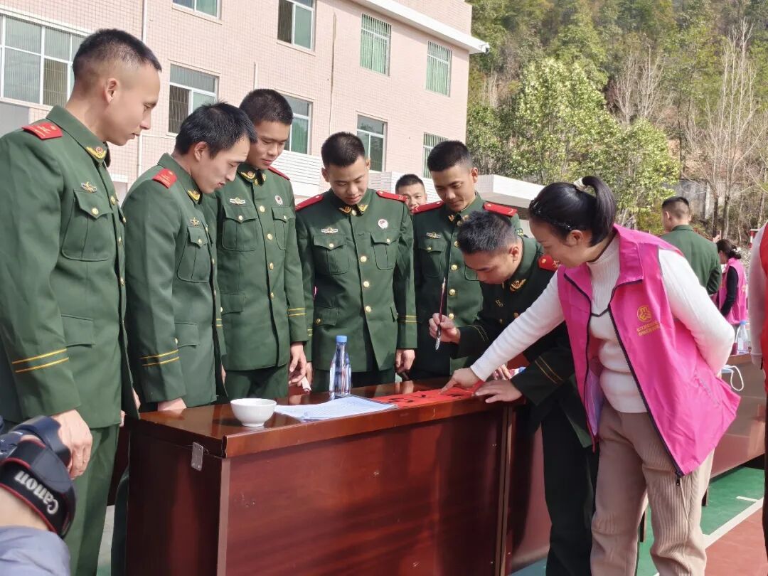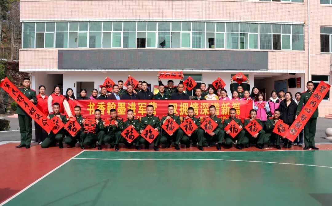新春将至,年味渐浓。为弘扬拥军优属优良传统,密切军政军民关系,1月29日上午,龙岩市长汀县退役军人事务局联合县总工会、县文联、团县委、县妇联,携手书法协会走进武警长汀中队,开展“书香翰墨进军营 双拥情深谱新篇”书法剪纸拥军活动,为驻汀官兵送上新春祝福。