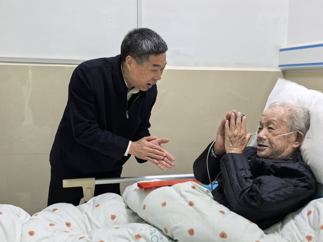 1月15日,罗庆春厅长在九〇〇医院干部病房走访慰问军休干部朱懿成
