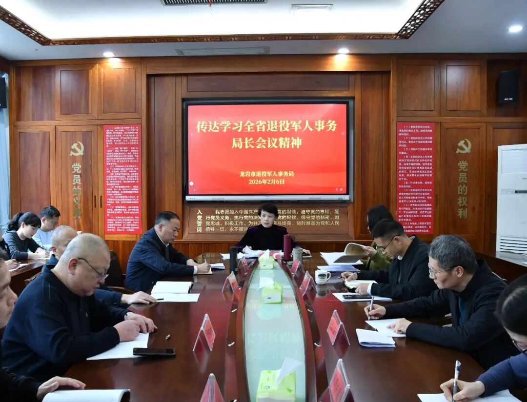 龙岩市 2月6日,龙岩市退役军人事务局召开全体干部职工会议,传达学习全省退役军人事务局长会议精神。