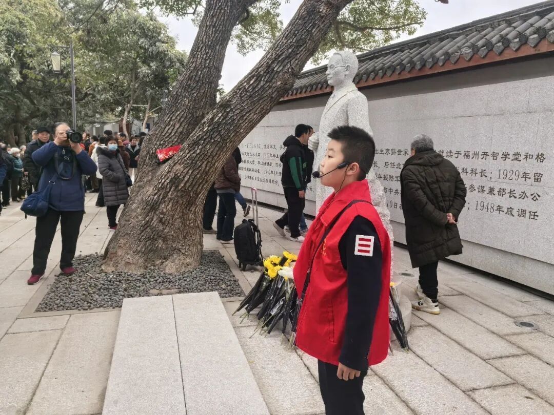 2月7日重启开放当天,故居内暖意融融、庄严肃穆。省、市两级烈保中心联合开展主题党日活动,党员干部们重温革命历史,感悟吴石烈士“凭将一掬丹心在,泉下差堪对我翁”的信仰力量。与此同时,省烈保中心红领巾英烈故事宣讲队的队员们,用稚嫩却坚定的声音,讲述吴石烈士求学从军、投身革命、潜伏报国的英雄事迹,引得现场群众驻足聆听。活动最后,红领巾英烈讲解员们唱响《沉默的荣耀》插曲《团圆》,悠扬的歌声承载着对英烈的深切缅怀与崇高致敬,也寓意着家国团圆,将现场氛围推向高潮。