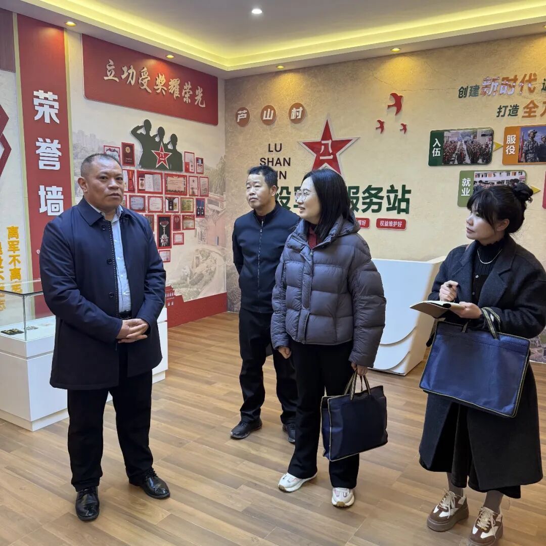 走进芦山村,浓厚的崇军氛围扑面而来。村内的崇军堂生动讲述了烈士事迹与红色传承,成为村里凝聚军心民心、赓续精神血脉的前沿阵地。在基层退役军人服务站,小分队向工作人员、退役军人、军烈属宣讲优抚褒扬、就业创业、困难帮扶等政策,指导老兵就业创业。老兵们纷纷表示,深切感受退役军人事务部门的关怀温暖,感恩之心、奋进之志更加坚定。