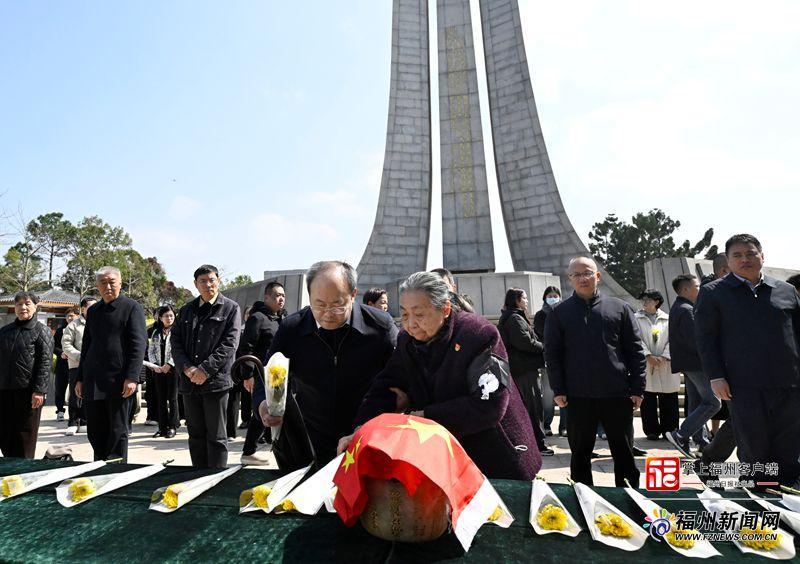 3月10日上午,林祥熹烈士骨灰安葬仪式在福州市文林山革命陵园举行,妹妹林祥仪和社会各界人士向林祥熹烈士献花。