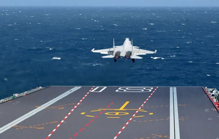 海军福建舰开展入列后首次海上实兵训练期间,歼-15DT舰载机弹射起飞(资料照片)。新华社发(高泽明 摄) 搏击海天,我国第一艘电磁弹射型航空母舰福建舰入列第二周,就开展首次海上实兵训练,多型舰载机完成多架次弹射起飞和着舰训练,入列第二个月就首次跨海区执行试验训练任务。 角逐长空,空军某部借助科技手段,瞄准潜在对手作战理念、装备性能和战术特点打造新型蓝军,盯着红方软肋打,频频出难题、设困局,倒逼飞行员找短板、强能力。