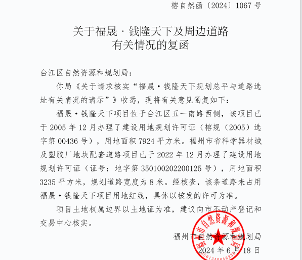 台江区联发臻品小区交房一年多,两条配套路均未动工。 堵点1:鲤鱼巷规划路用地纠纷如何解? 联发臻品小区配套路建设的第一堵点,是小区南侧的鲤鱼巷规划路,这里是进入联发臻品小区车库的必经之路。 在现场,台江区建设局副局长黄雯向记者介绍,联发臻品小区南侧道路规划为8米宽,在2023年就已完成招投标,建设单位展开了保护性施工。但相邻的福晟钱隆天下小区居民对道路红线提出异议,抗拒阻挠施工,导致施工无法继续。 “我们会同自然资源和规划部门以及洋中街道与居民代表进行了沟通协调,解答这些居民的疑问,希望大家能够支持。我们也多次向区政府打报告说明情况,希望能够尽快推动问题解决。”黄雯表示。 针对红线争议,台江区自然资源和规划局用地规划二科科长蔡秋奋告诉记者,此处规划路建设需要福晟钱隆天下小区将停车场向内退让1米多,这部分面积原本就属于道路红线,被福晟钱隆天下小区占用了十几年。但福晟钱隆天下小区的居民认为,按规定道路与建筑退距不得低于10米,该距离应从建筑物投影线也就是从阳台外缘起测量,而不是从建筑外墙测量,因此产生了争议。 “当时,我们跟这些居民代表一起去了福州市自然资源和规划局调档,对比了土地证和规划总平图,确认道路没有占用福晟钱隆天下项目用地红线。福州市自然资源和规划局也专门发函答复,确认福晟钱隆天下2#楼北侧退道路红线是从建筑主体墙起算(不含楼梯间、阳台)。”蔡秋奋表示,“实际退距大约是10.37米。” 由于群众阻挠,这段路的修建再无声息。协调工作何时才能突破,除了协调还能采取什么措施?台江区建设局及洋中街道办事处到场负责人均表示:已经协调多次,因群众反应较为激烈,“没什么进展”。